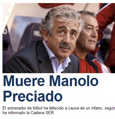 比利亚雷亚尔主帅普雷西亚多因心脏病去世