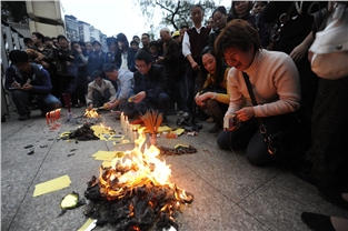 3月24日上午,停课一天福建南平实验小学恢复上课。凶杀案被害者的家属一早在学校门口祭奠逝去的孩子。3月23日,福建南平市延平区发生重大凶杀事件,目前共死亡8人,受伤5人。 中新社发 卢国华 摄