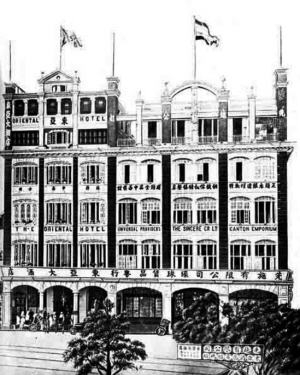 现在单从当时大新公司在香港、广州的商场建筑上,我们就能看出大新百货公司雄厚的实力。当时,港穗两地的大新百货公司都是大新公司自建楼房,在其中建筑规模以西堤支行最大,是12层钢筋混凝土建筑,并自置有供水、发电等设备,四部升降机,顶上三层是凉台式小楼和天台,顶楼设有“大新乐园”。建筑左右两旁还兼营亚洲酒店和觉天酒店。而惠爱路分店为五层砖木水泥混合结构,内有天台游乐场、西餐和浴场等。天台游乐场游人非常多,有所谓文明戏杂技等演出,就连著名的近代题材戏剧陈云裳等也曾在这里演出过。入场券每位一毫在当时算是相当高昂,光门票一项收入已相当可观。当然,商场内拥挤的主要原因之一,还是升降机吸引了游人来乘搭。据说在广州大新百货鼎盛时期,竟然有不少私娼混迹其中,致使一些富贵人家的“大家闺秀”非常尴尬,既想去逛大新,又怕招致误会。