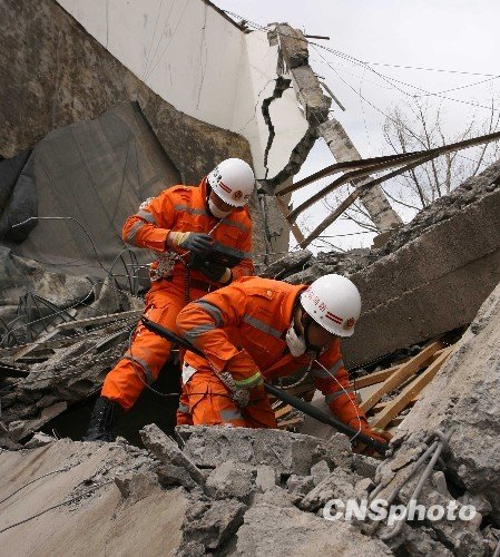 4月16日,青海玉树地震救援进入第三天,来自兰州军区、山东消防特勤、重庆特勤、广东边防总队、云南边防总队、青海民兵等搜救队连续搜救,幸存者奇迹生还。 中新社发 陈文 摄
