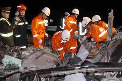 确认各自分工后,救援行动迅速展开,在交警队牵引车的配合下,消防官兵及时利用液压剪、液压扩张器、金属切割机对轿车进行破拆,开辟救生通道,同时不停地向被困人员喊话,防止其出现昏迷。10分钟后,第一名受伤人员被成功救出,迅速送往奎屯市急救中心进行抢救。至凌晨02时16分,4名死亡人员遗体也被成功救出。至此,这起重大交通事故中5名被困者在消防官兵、交警、120救护人员两个多小时的奋战下全部被成功营救。