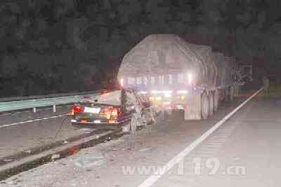 13日晚23时29分,奎屯市消防二中队接到报警:312国道乌奎高速路段4375公里处发生一起小轿车与拖挂大货车追尾的重大恶性交通事故,轿车内5名被困人员, 4人已经死亡, 还有1人被死死的卡在车内,生命危在旦夕,急需救援。