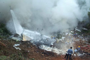 这架飞机从阿联酋的迪拜出发,目的地是印度西南部卡纳塔克邦的门格洛尔机场。飞机在试图降落时冲出跑道,坠入附近一个深谷,机身彻底毁坏并引发大火。