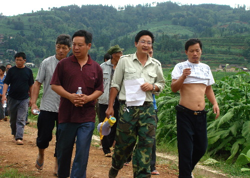 郑垧靖(前中)在下乡途中(资料照片)。 新华社发