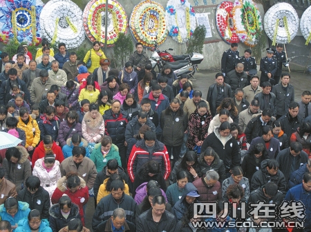 昨日,宜宾阴雨绵绵,仿佛天公悲悯,为因公殉职的好警察文万彬“垂泪”。下午4时整,因公殉职的宜宾县警察文万彬的追悼会在县殡仪馆举行,上万群众来到现场吊唁(上图)。