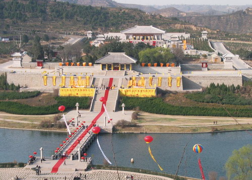 黄帝陵古称“桥陵”,位于陕西黄陵县桥山,是中华民族始祖轩辕黄帝的陵墓。陵前祭亭内树“黄帝陵”碑,陵园入口处有汉武仙台。轩辕庙位于桥山脚下,是历代炎黄子孙祭奠黄帝的场所。庙内建筑沿中轴线依次有山门、诚心亭、碑亭、“人文初祖”殿,东侧为碑亭,西侧为陈列室。院内千年以上古柏16株,其中“黄帝手植柏”历经5000年岁月,堪称世界柏树之冠。黄帝陵区山环水抱,古朴庄严,气势非凡。