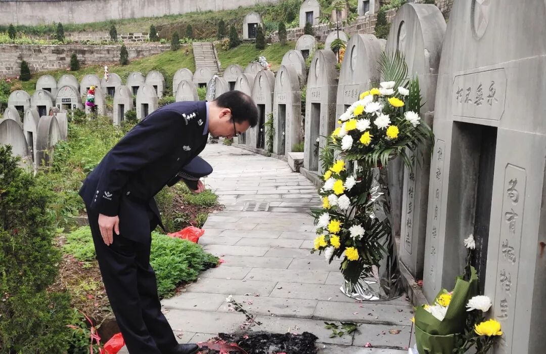4月1日上午,清冷无风,梁新宇再次驱车赶到梁平区烈士陵园,下车后仔细整理了衣帽,手捧素菊,挺直身板肃穆走进墓区。他熟悉地顺着石阶拾级而上,右转、再上石阶,右转来到何万胜烈士墓前,小心地祭上素菊,敬礼、脱帽、鞠躬。