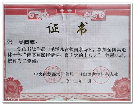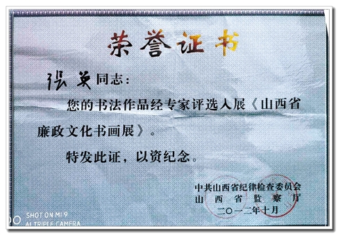 自2000年12月担任书协办公室副主任后,积极配合主席团工作,为寿阳书协全面落实“走出书斋、服务社会”做了大量的工作,在担任协会副主席期间,按照分工积极协助主席主管协会内务服务工作,保证了协会活动、会议、展赛的及时通知和有效组织,并与主席团成员配合积极开展老年会员的安抚、慰问,直到病榻在床仍然不忘书协工作。