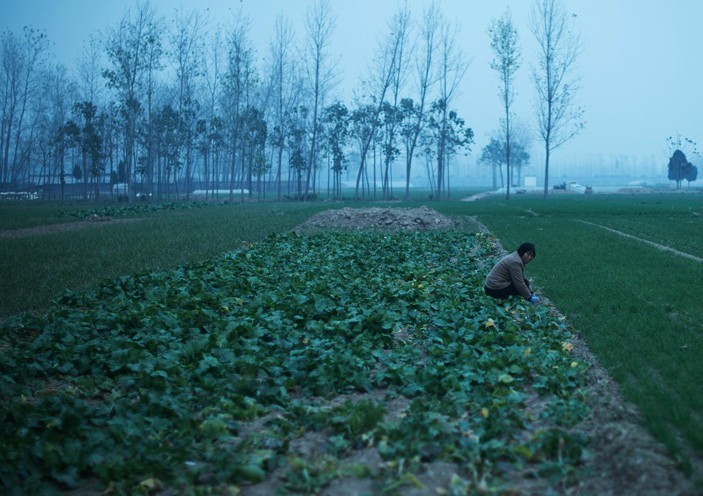 在周口市扶沟县下马刘村,农田里干活的农妇身后是一处刚被铲平的坟头。从今年5月开始,河南省周口市开始了一项为期数月、颇受争议的“平坟复耕”工作。周口市委一名宣传干部称,200多万个坟头先后被平掉,复种耕地近3万亩”。