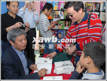 但真正意义上的告别,其实是在7月2日,那天我和贾平凹等一帮商洛老乡去家中看他,敲开门,夫人将他从内室扶出来,坐在一个硬木椅子上,同我们说了四十多分钟的话。虽然面容消瘦,身形枯槁,但尚有接待朋友的气力,并能看出来,他是尽量想撑着跟我们多说说话。为了活跃气氛,我们努力寻找着快乐的话题,说人生尴尬,说生活段子,更多的,说的是贾平凹在地震中损失的坛坛罐罐,以便引发贾平凹每念及此,就痛苦不堪的孩子般幼稚的表情。京夫一直没有说话,但他在听,在笑,在乐,虽然乐中难以掩饰那份生命的痛楚,可在一刹那间,也分明有忘却一切苦难的时候。这期间,还有两位朋友说没有他的长篇小说《鹿鸣》,他便让夫人取来,认认真真签了名。签名的书,在我们手中传递,字还是写得那么清正,疏朗,有力,甚至全然不像一个病入膏肓的作家的手笔。