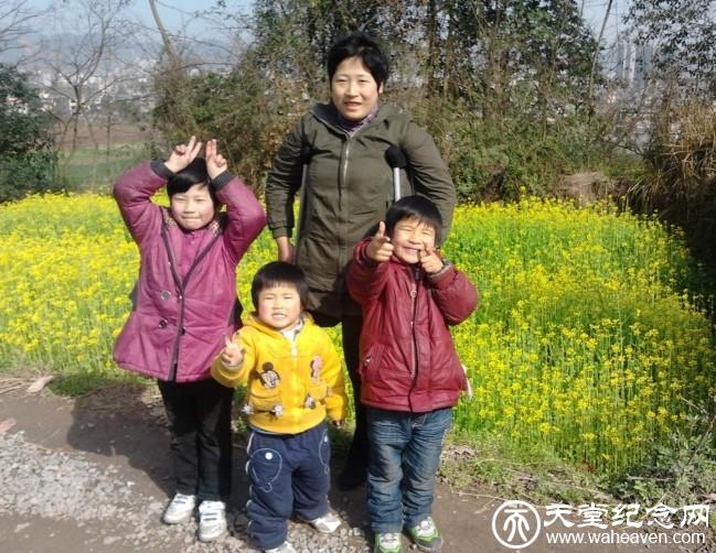 彭彩群生前与三个孩子合影(幸福)