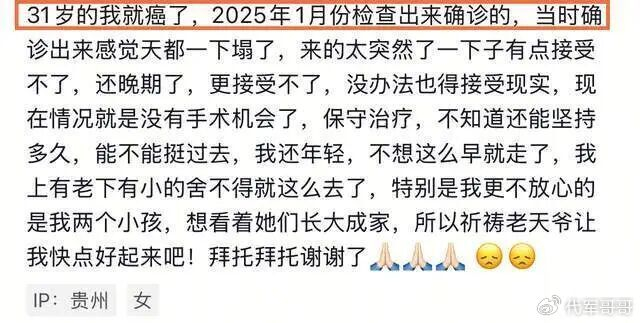 病魔的侵蚀远比想象中残酷。2025年12月起,周艳的病情急转直下,体重急剧下降,原本灵动的脸庞变得颧骨凸起、瘦骨嶙峋,全身剧痛让她彻夜难眠。癌细胞堵塞了她的胃部,吃什么吐什么,只能靠营养液维持生命,而最难以忍受的,是体内持续的“火烧膛”之感——喉咙和胃部的灼烧感日夜折磨着她,连喝一口水都像吞玻璃。偶然间她发现,冰棍的冰凉能暂时抚平灼痛,哪怕只有五分钟的缓解,也成了她对抗剧痛的最后武器。