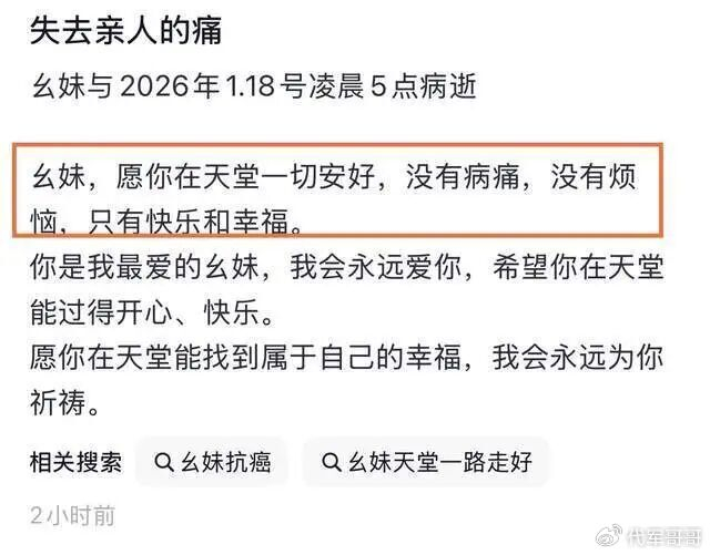 生命的尽头,周艳的坚强令人心疼。1月6日,她在妹妹的帮助下重新更新视频,虚弱到连手机都快握不住,手中却依旧攥着冰棍;1月16日,她坦诚“快坚持不住了”,背痛让她无法入眠,可即便如此,心中牵挂的仍是两个年幼的孩子。1月14日,在医生告知治疗已无意义后,周艳选择回到老家,在熟悉的环境里陪伴亲人走完最后一程。四天后,她在家人的环绕中离世,怀中还残留着冰棍的余温。