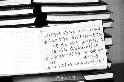 郝万忠的70多本日记上记录了工作中的点点滴滴以及他对人生的态度。新华社记者 邹俭朴摄