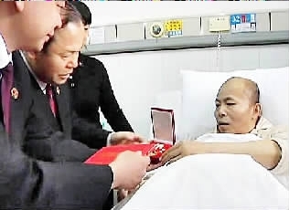 (广西壮族)自治区检察院检察长张少康到病房授予杜云一等功奖章和证书