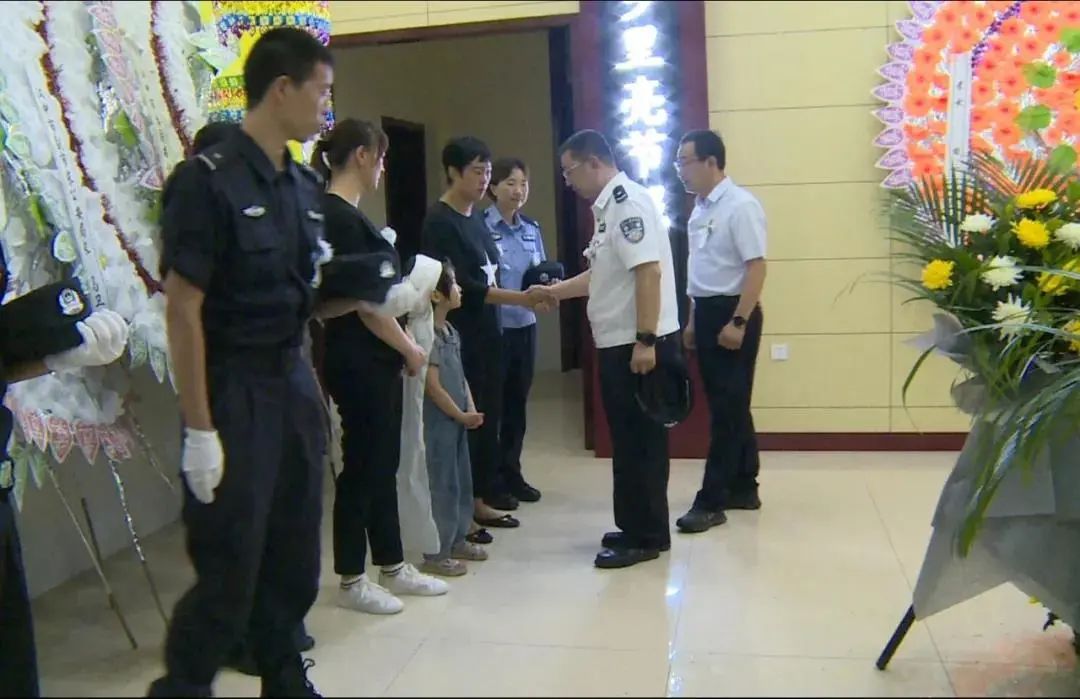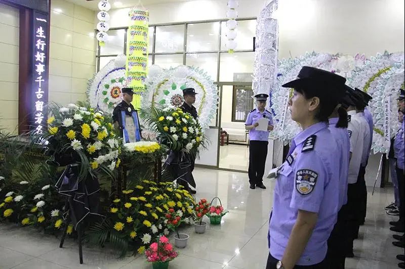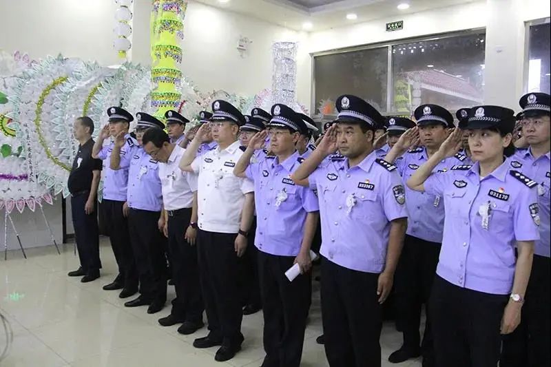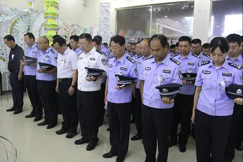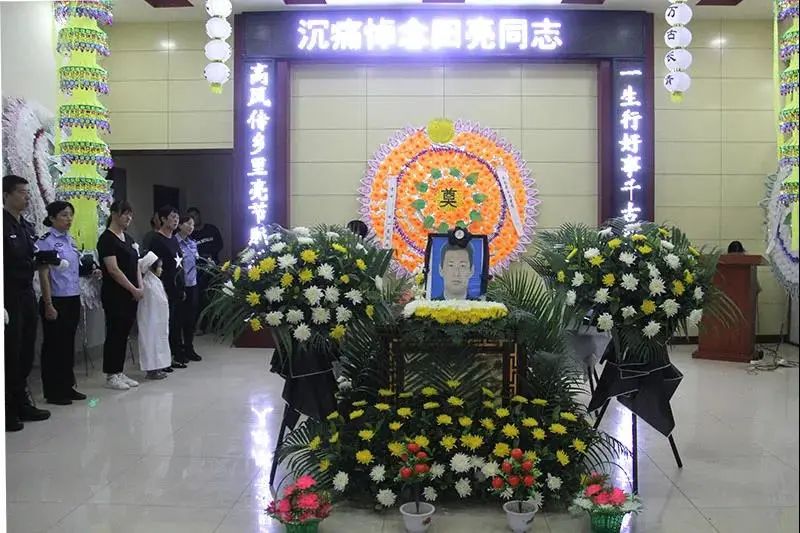 挽联高悬,哀乐低回,参加告别仪式的民警、家属及亲朋胸前佩戴白花,整齐列队,肃立默哀,现场民警庄严敬礼,整齐脱帽,面向田亮同志的遗体三鞠躬,为失去这样一位好警察、好战友、好公仆而感到深深的惋惜。