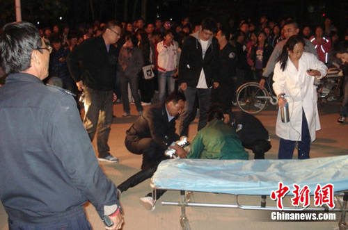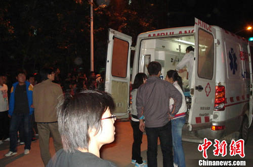 16日晚,河北大学校园内的事故抢救现场。