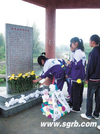 连日降雨,通往李大为烈士墓地的小路泥泞不堪,但全体祭拜人员坚持走到李大为墓前,为烈士送上花圈。江水呜咽,泪雨滂沱,犁市镇大为中学的一位学生代表说,自己作为这所烈士命名学校的一员,深感骄傲与自豪,将抹干眼泪、挺直脊梁,早日成为祖国的栋梁之材,以告慰英灵。