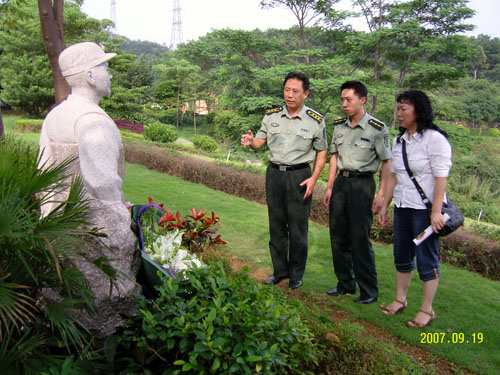 9月19日,广东省军区韶关军分区政治部副主任庄德军上校在市民政局社会福利和社会事务处工作人员的陪同下,一行三人专程来到深圳市吉田墓园,为在2006年南粤抗洪救灾英勇牺牲的李大为烈士扫墓。