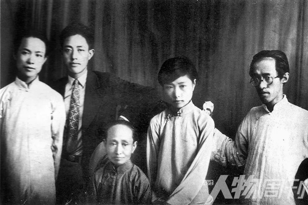 沈从文家人合影。左起:沈从文、沈荃(三弟)、母亲、沈岳萌(九妹)、沈云麓(大哥),1929年摄于上海