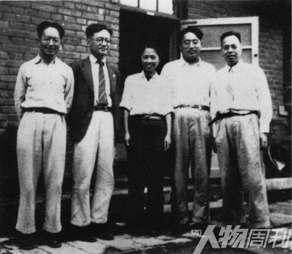 1949年夏,出席北平第一次文代会的朋友到沈从文家中拜访。左起:沈从文、巴金、张兆和、章靳以、李健吾