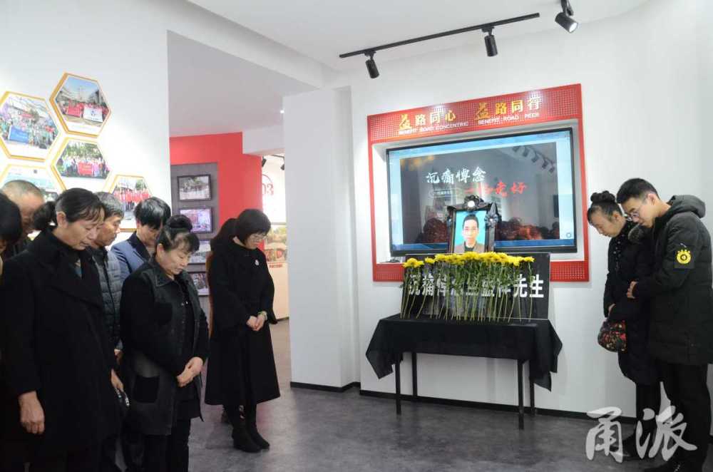 “得知竺大哥去世的消息后,我们整个团队都深感哀痛与不舍。”胡亚佩说,今天谢晓曼带着儿子回到北仑,代丈夫与家乡人做告别。他们便在百灵鸟公益联合会展厅布置了一场小型悼念会。现场来了40多人,包括百灵鸟团队的志愿者、街道残联,以及竺盛祥在北仑的亲朋好友等。
