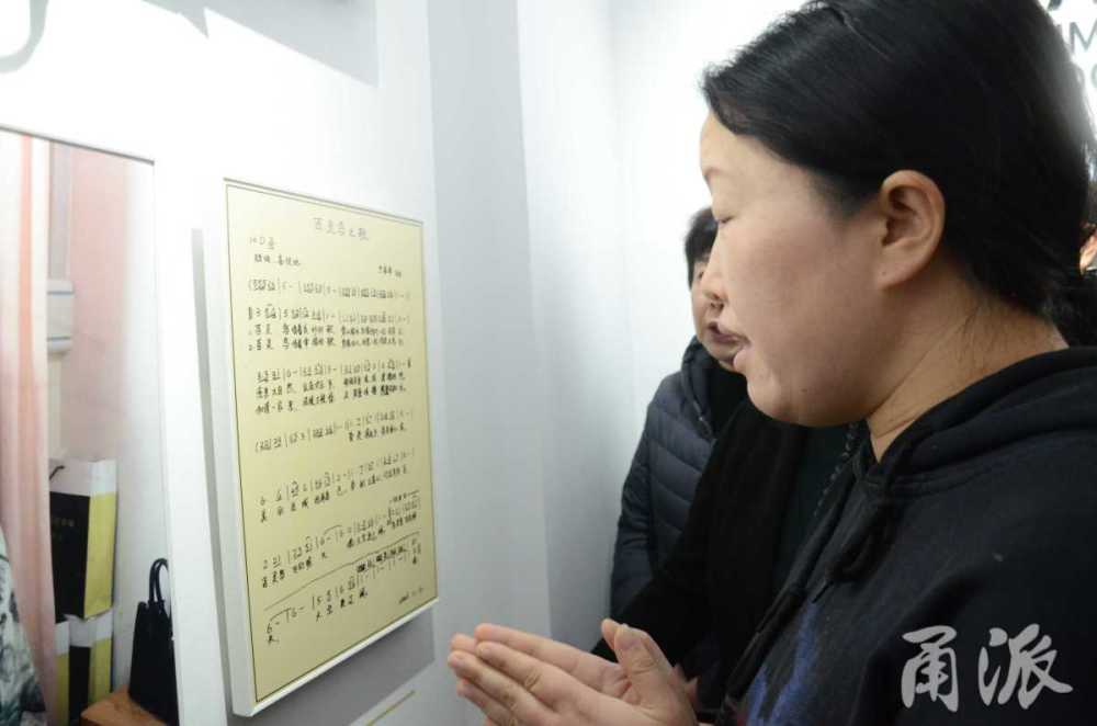 百灵鸟公益联合会展厅里一面墙是属于竺盛祥的。《百灵鸟之歌》的手稿被放大裱框,一旁的电子屏随时播放着《百灵鸟之歌》这首曲子。墙面还挂着四张照片,那是“百灵鸟”近几年赶到海宁与这家人的合影。