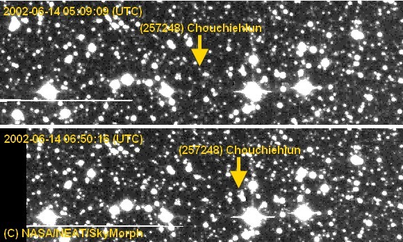 周杰伦星(Chouchiehlun)是由两岸天文爱好者蔡元生、陈韬和林启生等于2009年在台湾玉山国家公园的鹿林天文台发现合作发现的一颗小行星,编号257248。小行星是目前天文学界唯一由发现者拥有命名权并获得公认的天体。周杰伦星属于主带I型小行星,永久编号为257248,临时编号2009 FA19。直径约为3公里,绕太阳一周需要3.64地球年。2011年6月在金牛座运行,距离地球约5.4亿公里,亮度约23等。在冲日前后它的亮度在19-20等之间,可用大型望远镜观测到。“周杰伦”星下次冲日时间为2012年1月7日。 周杰伦星由蔡本人与中央大学黄崇源教授合作、多位大陆天文爱好者共同参与的天体搜寻计划中发现的其中一颗小行星,发现于2009年3月20日。发现过程可谓两岸天文工作者及爱好者通力合作的典范—— 由蔡元生制作观测排程,交由中央大学鹿林天文台观测助理林启生操纵41厘米望远镜进行观测,随后大陆天文爱好者陈韬及金彰伟通过网络下载及处理数据,新小行星由金彰伟发现,陈韬上报,经美国亚利桑那大学乐蒙山1.5米望远镜及基特峰0.9米望远镜等设备先后确认,获得了2009 FA19的暂定编号,永久编号于2010年12月获得。由于四位发现者刚好都是周杰伦的铁杆粉丝,之后经四位发现者一致商定,这颗小行星拟用华语流行天王、著名音乐人周杰伦的名字命名。命名提案经国际天文联合会小天体命名委员会通过,于2011年6月小行星中心公报第75354号中宣布了这一命名决定。周杰伦经纪公司的工作人员说,周董上月听到这个消息,以为是歌迷跟他开玩笑,最后知道是真的后,还是很吃惊的感觉,并觉得意义很重大。而周董也因此有些灵感,准备在下张专辑中,写一首跟小行星有关的歌曲。