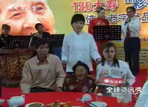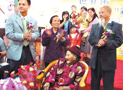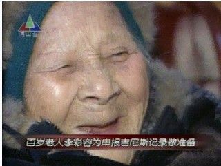 本报讯据《信息时报》报道:昨天,佛山市南海区西樵镇西岸银坑村的老人李彩容,迎来了她的120岁(虚岁,实为119岁)的生日,家乡父老特别为她在家乡设宴庆祝。据介绍,李彩容老人已经接到了英国吉尼斯世界纪录所发出的邀请函,如果认证成功的话,她将超过已故的日本女寿星———116岁的本乡门真,成为在世的世界最长寿的人。