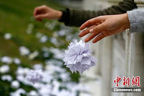 重庆市民用白花缅怀墓中长眠的英灵。孟幻 摄
