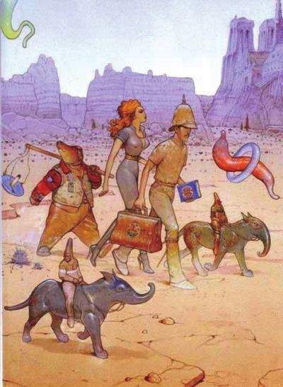 进入新世纪以后,让·纪劳主要创作了一部以自己为主人公的漫画《在墨比斯之内》。在这部漫画中,他和自己各个时期代表作中的漫画人物发生互动,身临其境地进入了自己所创造的异想世界。想来让·纪劳在创作这部漫画时,一定充满了幸福感:他在与自己创作的漫画人物共舞呢。