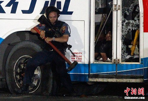特警把旅游巴士团团包围,警察曾把后挡风玻璃打碎,并试图强攻旅游巴士。至晚上接近9时,枪手被击毙后,巴士内的幸存者才陆续被救出来。