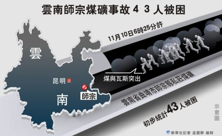 中新网曲靖11月10日电 (记者 史广林 胡远航 杨颖融) 云南省应急办10日下午在师宗县私庄煤矿事故现场发布,截至10日15时40分,煤矿事故已致20人遇难,23名矿工仍下落不明,救援人员正全力搜救中。