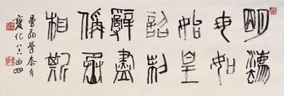 ● 学习汉隶、汉分书,必须先学篆书。因为汉代隶、分,都是从篆书中变化出来的,断没有不明篆书而能写出高古的隶分书的,写出错别字和俗体字也就难免了。试看我国南北两个森者,他们的分书,都属于广告牌上的字,只是写字,不是艺术。