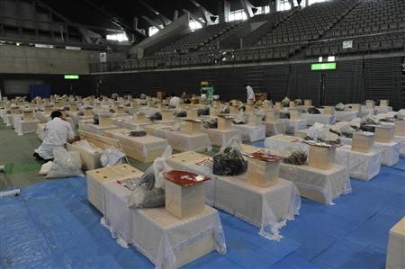 位于宫城县利府町的临时遗体安置所