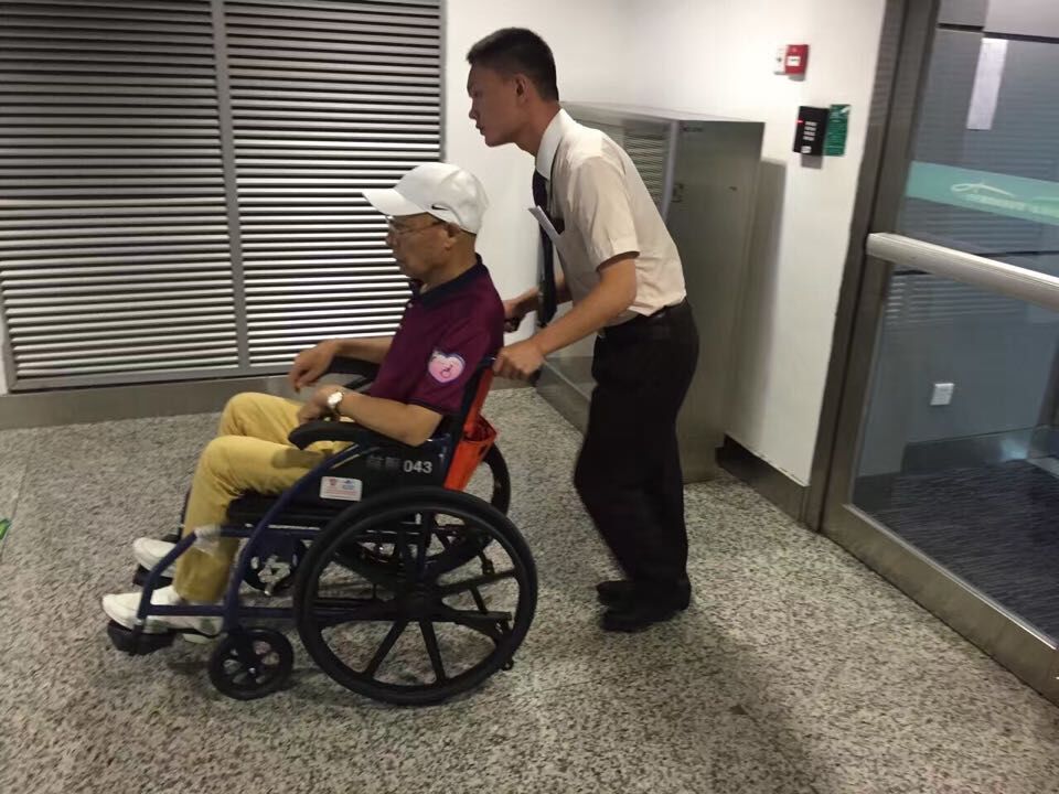 一路绿灯。空姐也格外照顾,让3名旅游换位置,腾空了正对飞机安全通道这排空间相对宽敞的位置,让老爸躺下来,空姐还给老爸送来一条毛毯保暖。上下飞机还有志愿者推轮椅接送。