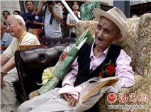 9月1日,《阳光报》举办的“陕西抗战老兵笑脸展”在大华·1935博物馆开幕,老人受邀出席。老先生虽然身体状况不佳,但他穿着正式,坐着轮椅,显得很开心。