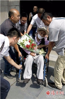 活动前夕,在邀请老兵时,考虑到老人的身体状况,但是于老先生坚持到来。当天馆内的空气很闷热,但于老先生坐在轮椅上坚持到了开幕式结束,面对大家的掌声,于老拿着手帕擦起了眼睛。