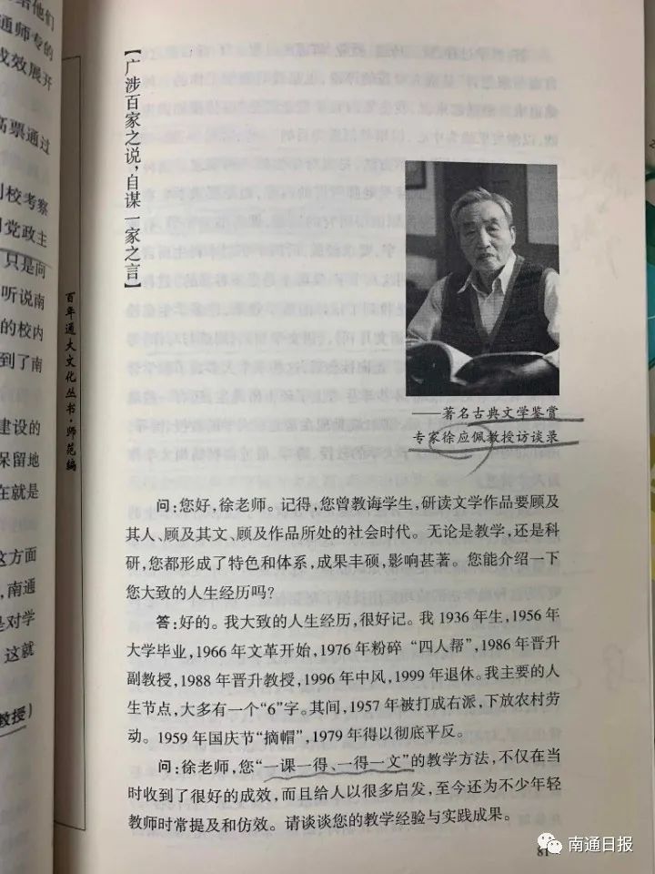 “路子正,根基深,不与他人计较,踏踏实实。辛苦一辈子,直到写不动为止,很不容易。”南通大学文学院教授、文艺评论家徐景熙寥寥数语,简单朴实却暗含深意。正是这样伟大的人格与品性,成就了徐应佩教授令人敬仰的一生。