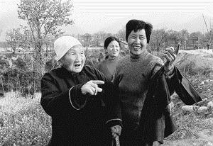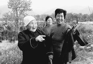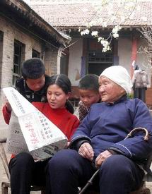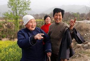 日前,陕西省潼关县太要镇西堡障村九十高龄的全国劳动模范山秀珍(左一)和现任村支部书记刘秀谋(右一)讨论农村道路建设。山秀珍1953年被评为全国劳动模范,如今她不仅每天都要看报,还经常到田间看看,到农户转转。她说,十六大提出的全面建设小康社会的精神让她激动不已。