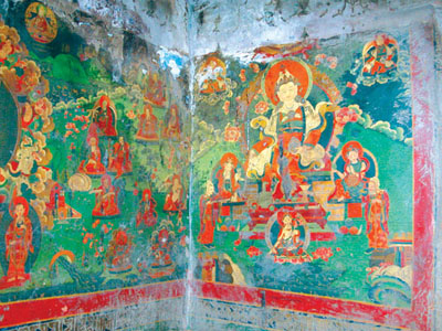 2003年9月的一天,吞达村的白玛桑珠打扫房间,撕下旧墙纸,带下旧墙皮,墙皮底下是鲜艳的壁画。壁画上有吞弥·桑布扎向松赞干布献上的第一部藏文赞美诗,有吞巴庄园的全景图等等。西院住着的扎白发现:墙上画着的吞巴庄园,就是他和其他3户人家现在住的房子,甚至画上的松树现在还在!