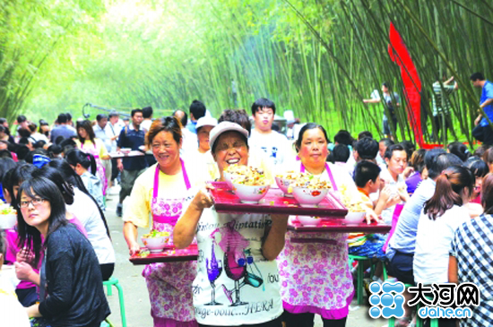 河南日报8月9日报道的重渡沟风景区“万人宴”图片