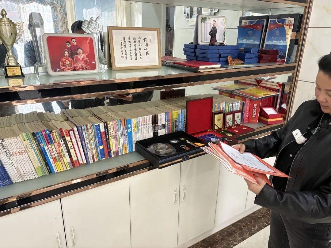 △家中有一面墙,放着沈科和弟弟读过的书,以及两人的奖章、奖杯。