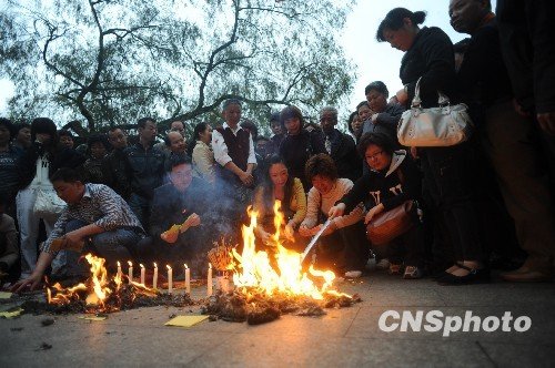 3月24日上午,停课一天福建南平实验小学恢复上课。凶杀案被害者的家属一早在学校门口祭奠逝去的孩子。3月23日,福建南平市延平区发生重大凶杀事件,目前共死亡8人,受伤5人。 中新社发 卢国华 摄