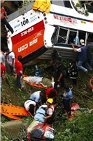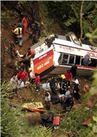 这辆载有49名乘客的巴士,18日上午9点20分在从避暑胜地碧瑶市(Baguio)驶往邻近的拉乌尼翁省(La Union)的途中,行经本贵特省沙布兰镇(Sablan, Benguet)山区时,因刹车失灵坠入30米深的山谷。