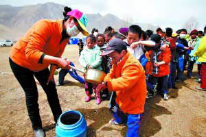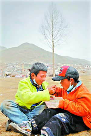 玉树福利院79名孤儿挤5间帐篷 吃完舔干净饭盒