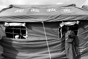 4月16日,青海玉树,赛马场安置点。这里成玉树最大的临时安置点。韩萌 摄