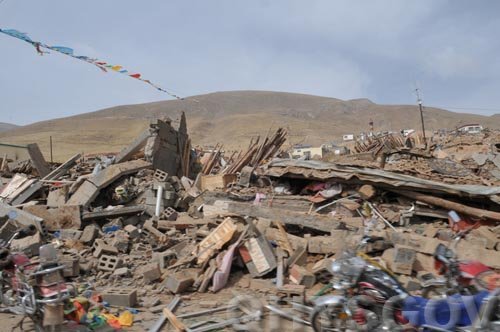 武警青海玉树州支队副政治委员阎军富表示,玉树州州府结古镇附近的西航村(音)已经夷为平地,99%民房全部倒塌。还有当地人表示,这样的村庄不止一处。