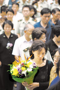 8月13日下午,细雨濛濛。北京军区总医院礼堂外,上千人冒雨肃立。