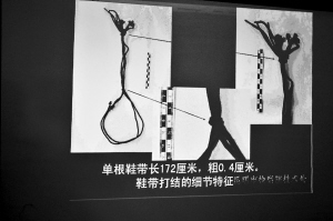 警方幻灯展示死者自杀所用鞋带